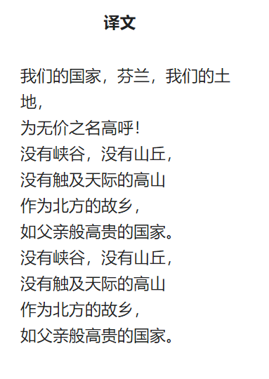 1863年,沙皇宣布芬兰语和瑞典语地位相同,鼓励地名、人名的芬兰化。更多歌曲的歌词逐渐被翻译为芬兰语。1867年,《我们的国家》歌词被芬兰作家翻译为芬兰语。芬兰语的歌词明确将“北方国家”定义为“芬兰”。