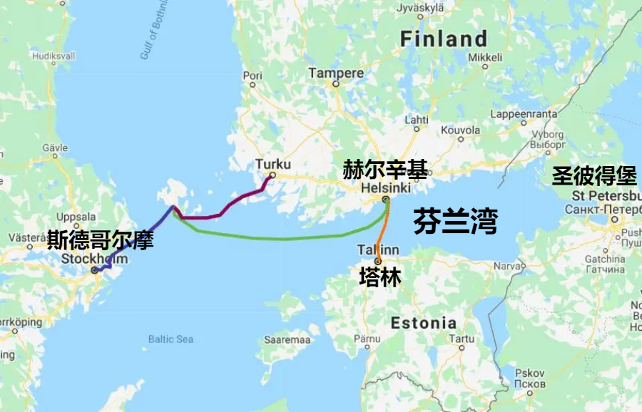 芬兰首都赫尔辛基和爱沙尼亚首都塔林隔海相望。两国都加入了欧盟后,人民可以自由相互往来,仅需2小时的轮渡成为了两国交通往来的重要工具。