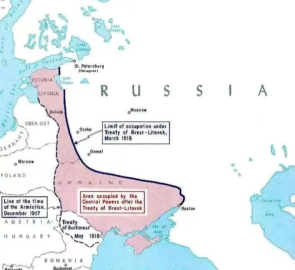 ▲《布列斯特和约》,苏俄失去的领土(粉红色)
