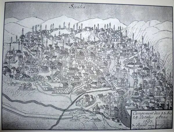 ▲1697年的萨拉热窝拥有8万人口和120座清真寺