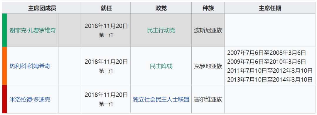 三个总统职位不仅要“按族”分配,还得“分区”选举。简单来说就是“你选你的,我选我的,互不干涉,等选好了三个凑一堆,轮流坐庄”。等选举结束后,再比较三位总统的票数多少,得票最多的就是本届主席团的第一任轮值主席。
