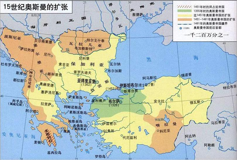 ▲15世纪奥斯曼帝国征服巴尔干半岛