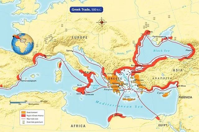 ▲古希腊人城邦遍布地中海和黑海沿岸