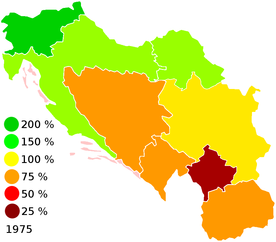 至1975年,斯洛文尼亚地区的整体经济实力是塞尔维亚的两倍。斯洛文尼亚地区的民众生活接近奥地利和意大利北部的水平。