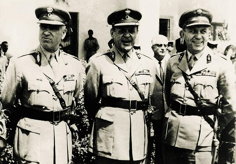 ▲帕帕斯塔索普洛斯(中间)联合两名军官,发动政变
