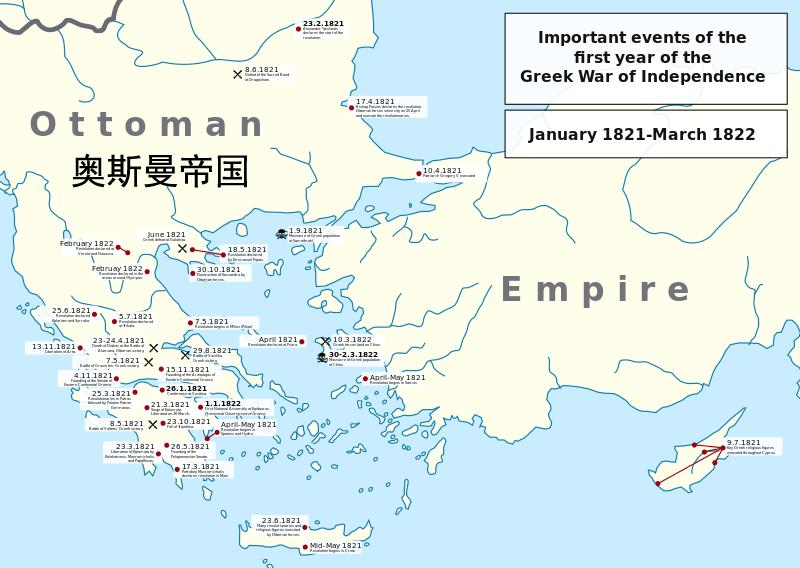 1821年,在希腊共和派的带领下,希腊爆发了反对奥斯曼帝国的独立战争。