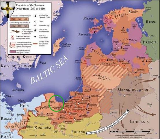 此后,随着后期十字军东征的失利,条顿骑士也开始寻找新的领地。其中富庶的波罗的海地区成为了他们的首选,条顿骑士的到来使得他们成为了当时波兰的心腹大患。