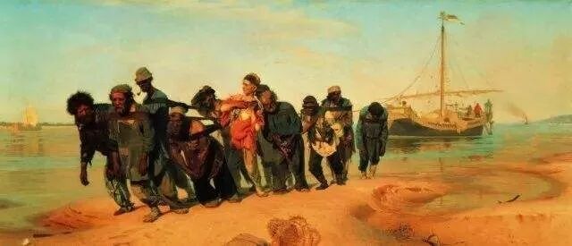 ▲《 伏尔加河上的纤夫》,出自19世纪列宾画作,批判农奴制下的生活