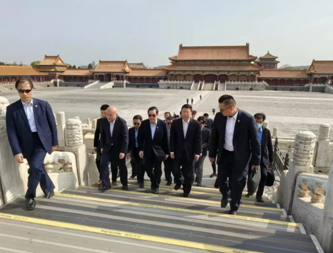 结束在卢沟桥的参观后,马英九一行乘车来到北京故宫。始建于1406年的故宫是世界上现存规模最大、最完整的古代木构宫殿建筑群,也是世界上收藏中国文物最多、来访观众最多的博物馆。作为凝聚中华传统文化精髓、文化成果精品的殿堂,故宫有着独一无二的地标意义和文化象征。