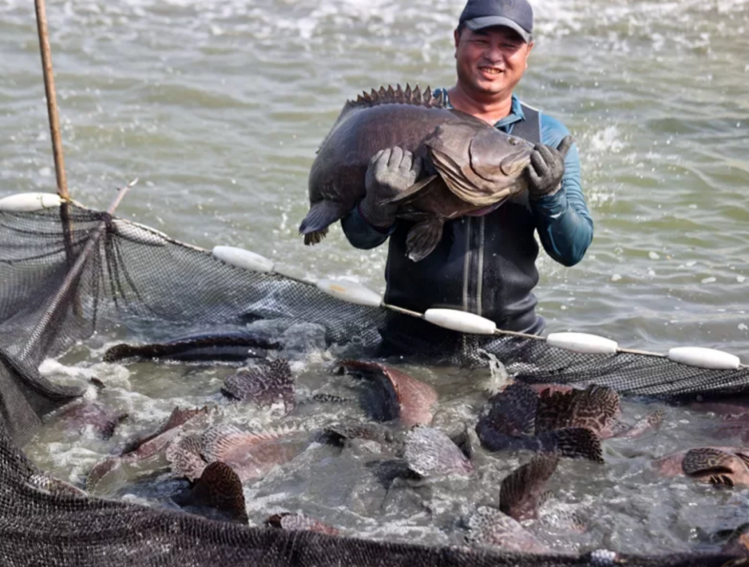 台湾高雄渔民正在收获龙胆石斑鱼。图源:台湾“联合新闻网”