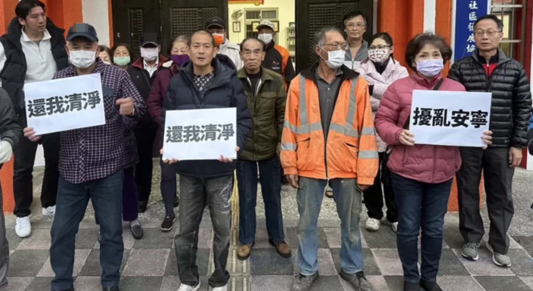 “赖皮寮”附近居民持标语抗议。图源:台湾《联合报》