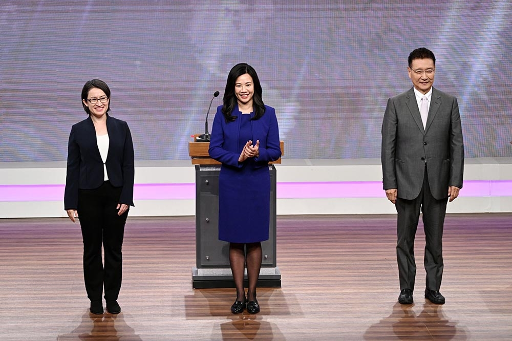 萧美琴(左)、吴欣盈(中)、赵少康(右)辩论开始前合影