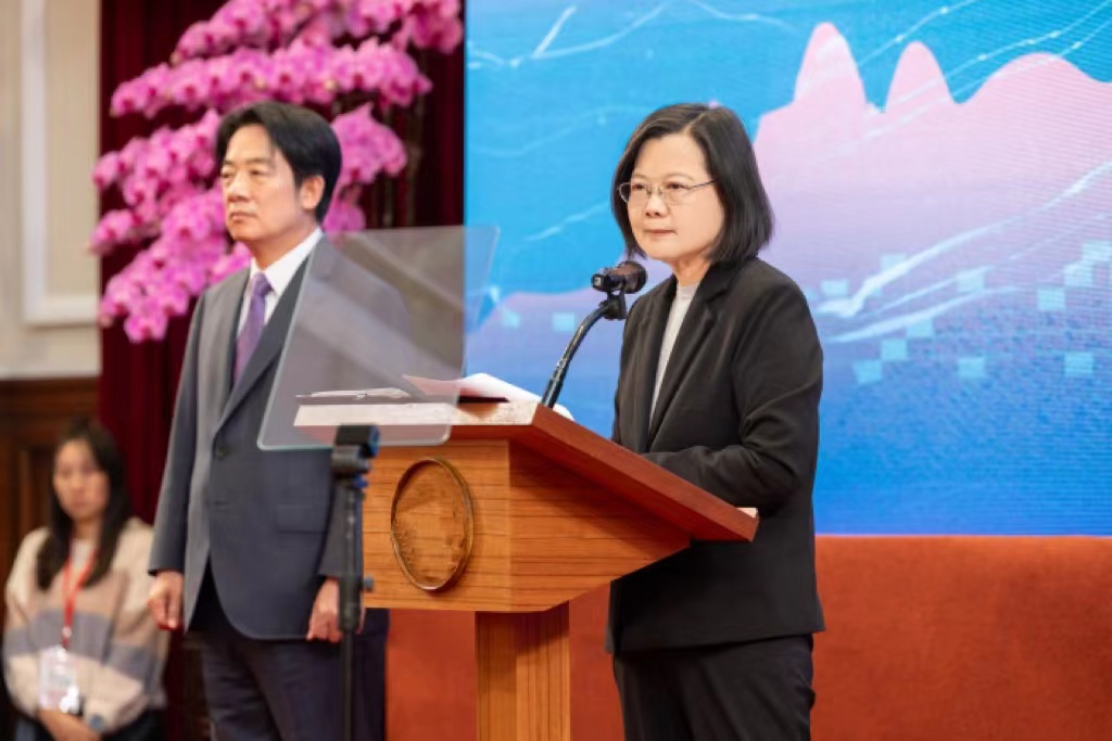蔡英文元旦谈话,赖清德在旁边一言不发 图源:香港“中评社”
