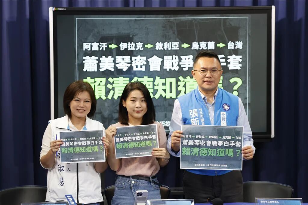 民代参选人游淑慧、徐巧芯、张斯纲(左至右)14日联合揭露萧美琴密会“美国精神”民防组织 图源:“中时新闻网”