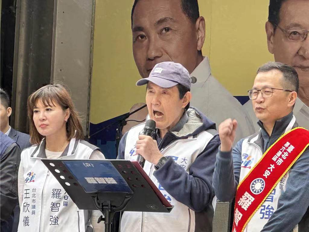 马英九在罗智强竞选总部成立造势大会上致辞 图源:“中时新闻网”