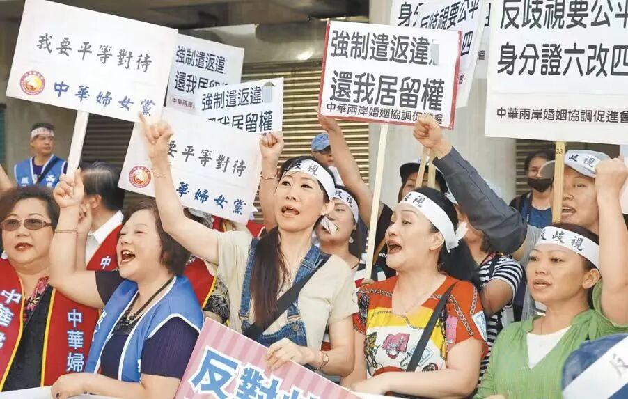 大陆配偶到台湾立法机构陈情(资料图)。 图源:台湾中时新闻网