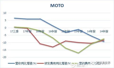 ①由于专网市场增速的平稳下滑,MOTO在专网领域的投入和激情在慢慢被美国典型的机构投资者消磨殆尽,不管在研发投入、营销费用等方面,MOTO都在进行明显的被动调整。