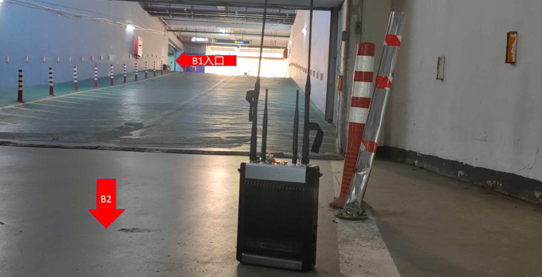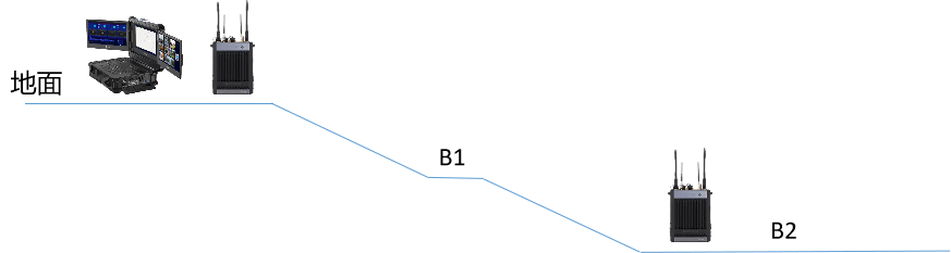 此场景的入口,B1和B2没有转角,从地面到B2几乎是直线,通联毫无压力。实际演练,救援人员可以再通过携带PNE380的方式,继续在车库作业区域突进。可完美实现地下停车场场景应急救援地面指挥部与地下救援人员的音视频通信。
