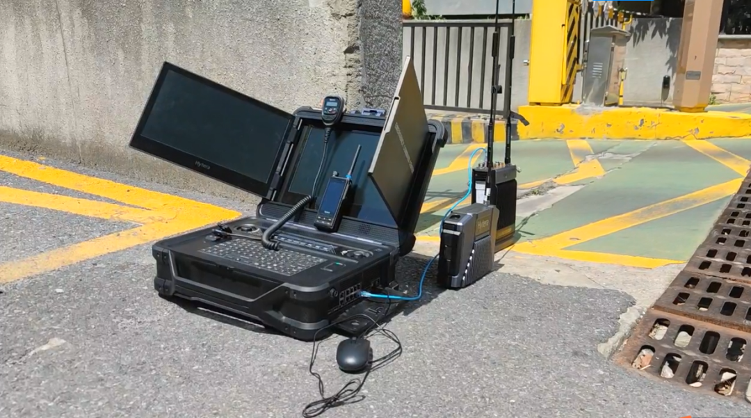 实际救援场景,指挥所一般设置在地面,本次评测我们增加地面与地下通联的科目。在停车场入口处,部署指挥箱和基站。