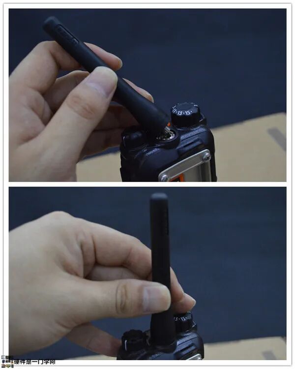 天线的安装很简单,只要将天线的母口与对讲机的公口对齐,拧紧即可。天线在中间的设计,可是获得了全球专利的。这样设计的优点就是当对讲机掉到地上的时候,最容易坏的就是频道、音量旋钮。机身的高强度设计,一般跌落都没有关系,旋钮则容易被砸坏。天线在中间,无论从哪个角度跌落,都不会直接砸到旋钮,顶多把天线弄坏,旋钮则被天线缓冲了,天线更换方便,价格便宜,而旋钮则需要返厂维修了。