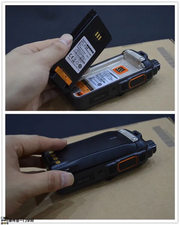 电池的安装也是傻瓜式的,触点对齐,放上,下压,往上一推,就完成了安装。这样的安装方式与其他对讲机有一些不同,一般是先把底部接上,再往里按。