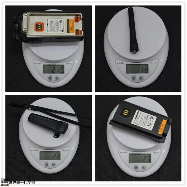 完整对讲机重量:安装好天线、电池、皮带夹、手提吊绳后重量为374克。由于电子称的精度问题,与单个配件总和有1克的误差。