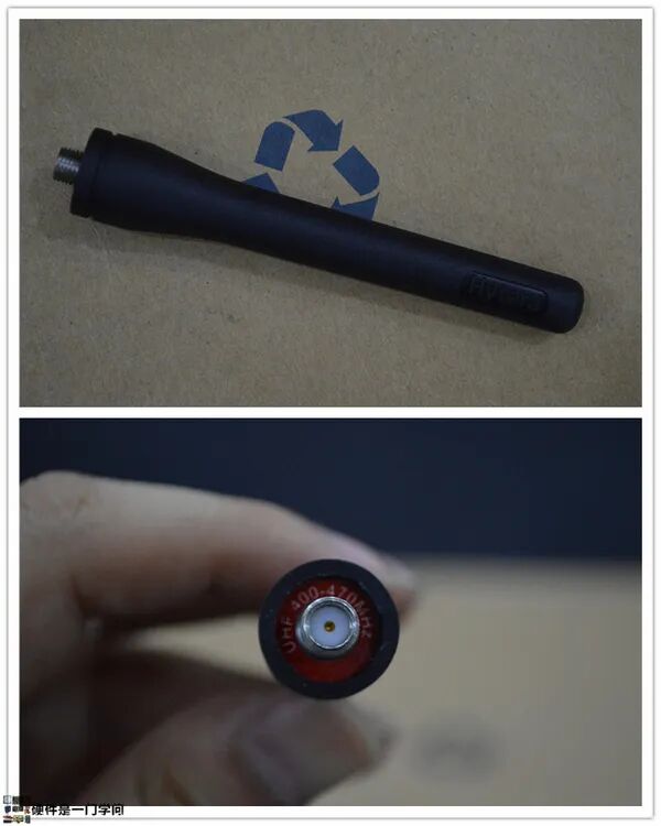 天线:天线与x1p的细细长长不同,这个短而粗。下图可以看出,天线为母口设计。并且在内部标注了UHF 400-470MHZ频率。