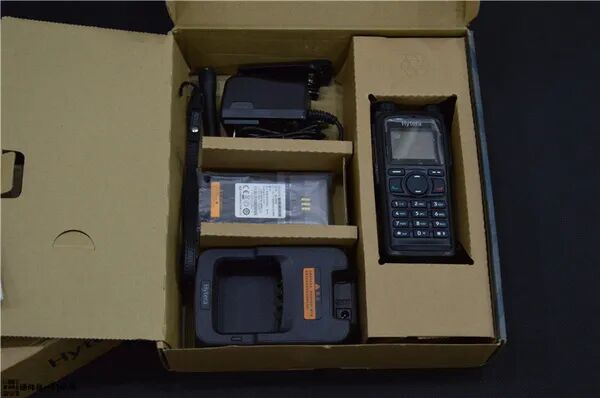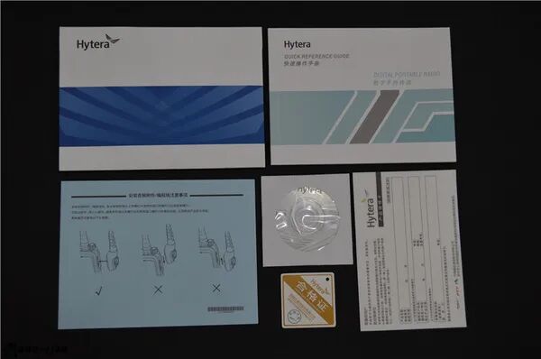 不愧是旗舰产品,海能达对这款对讲机的内包装也进行别具匠心的设计。不用任何泡沫材料,直接通过折叠纸盒,将整体分割成左右两部分,左边放配件,右边放机身。左边则又分割成上下两层,上次放用户手册,下层放配件。下层又被分割成3个格子,上面放天线、手带、充电器插头、腰带夹,中间放电池,下面放充电器底座。