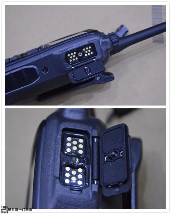 对讲机的右侧留有耳机、话题、数据传输接口,需要拧开螺丝打开。