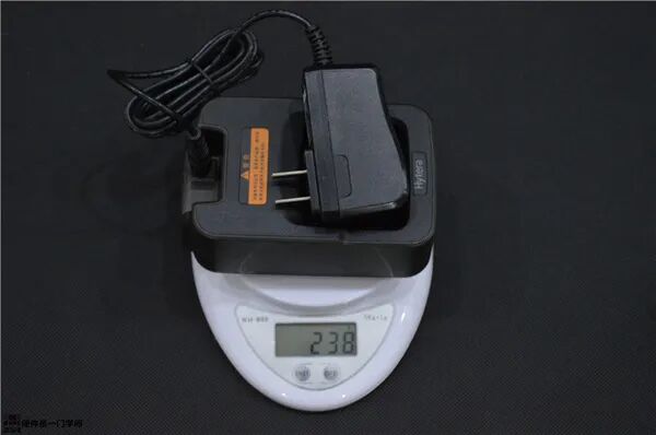 电源适配器重量:插头和底座的重量为238克,加上对讲机重量为374克,总重量为612克。如果带着一款PD780对讲机和充电设备出行,重量为612克,一斤多一点点,还是可以接受的。