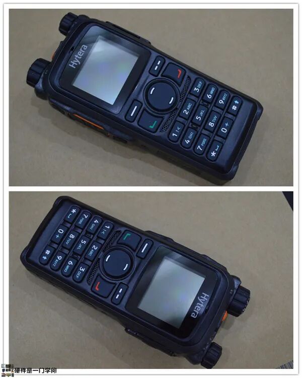 屏幕原先是有层保护膜,撕掉后,屏幕更亮丽清晰。屏幕的上面有Hytera标志,标志的正上面则为对讲机麦克风。
