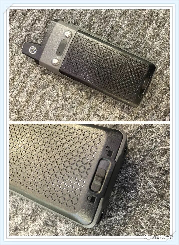 PNC370背部安装电池,电池扣提供锁扣设计,左滑锁死,此时无法打开电池扣,增加了可靠性。背夹需要手动安装,打开背部两颗螺丝,装上背夹拧紧螺丝即可,稳固耐用,完全不会有掉落风险。