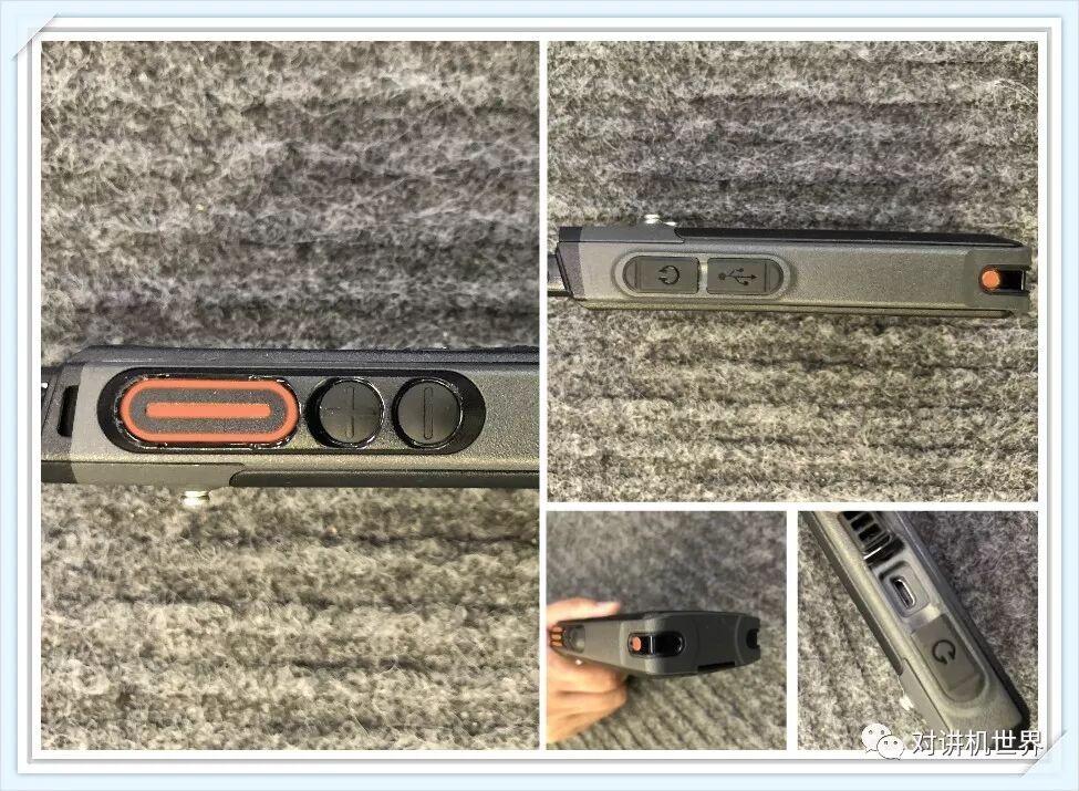 接下来我们看看PNC370对讲机的外观细节。PNC370设计上保留了传统对讲机的外观,正面一块2英寸的彩色屏,相比传统对讲机分辨率更高。按键简化为7个,搭配圆形导航键,操作非常简单便捷。下半部全部为喇叭和麦克风设计,实测在嘈杂环境也能有出众的音质,声音响亮,通过出色的降噪技术,有效的抵御环境噪声,不仅听得到流畅清晰的对话内容,还能准确辨识出对话发起人。