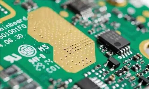 对讲机的发射功率一般较大,散热处理的不好,机器容易变成“发烧机”。主板上看到的大面积的金黄金黄的,就是用来散热的铜,发射部分的铝合金材质的屏蔽罩具备极好的散热效果,主板正反两面均使用屏蔽罩做到双重散热。