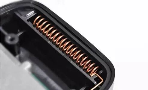横向嵌入在机器顶部的黄色铜丝线圈就是天线,这是海能达TD350外观颠覆传统的真正原因。这样设计不仅在外观上做到了美化,也防止用户在对讲机使用过程的一些误操作损坏对讲机,如不小心跌落将天线跌断,没上天线时不小心按到发射键发射了,导致烧机等隐患。