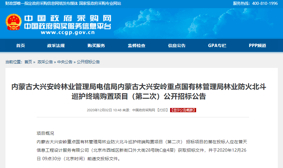 北斗 | 内蒙古大兴安岭重点国有林管理局1522万林业防火北斗巡护终端购置项目