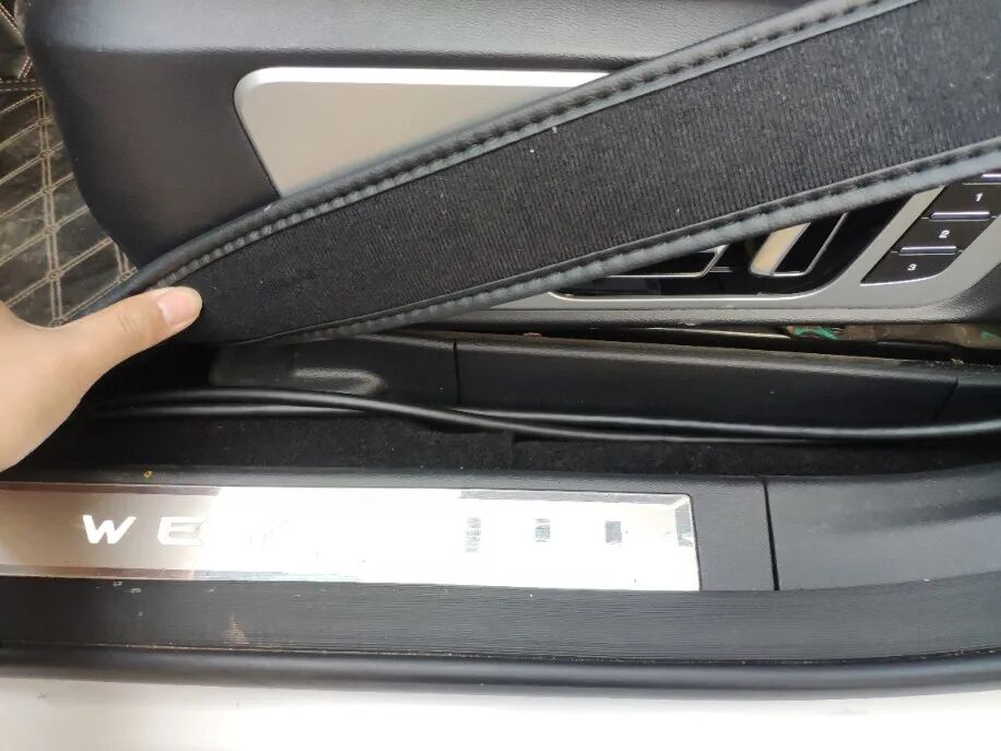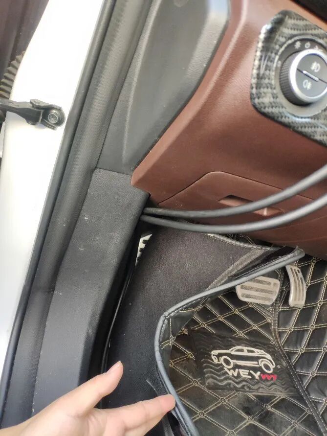 已经引导到后做。。依旧从脚垫下面。。。我极度不喜欢走门框橡皮,原因有四,第一,别人橡胶包皮好好的没惹你干嘛翻别人?第二,对密封性的NVH有影响,第三,尽量松弛些别太勒死弯曲,第四,凡事太紧缘分势必早尽