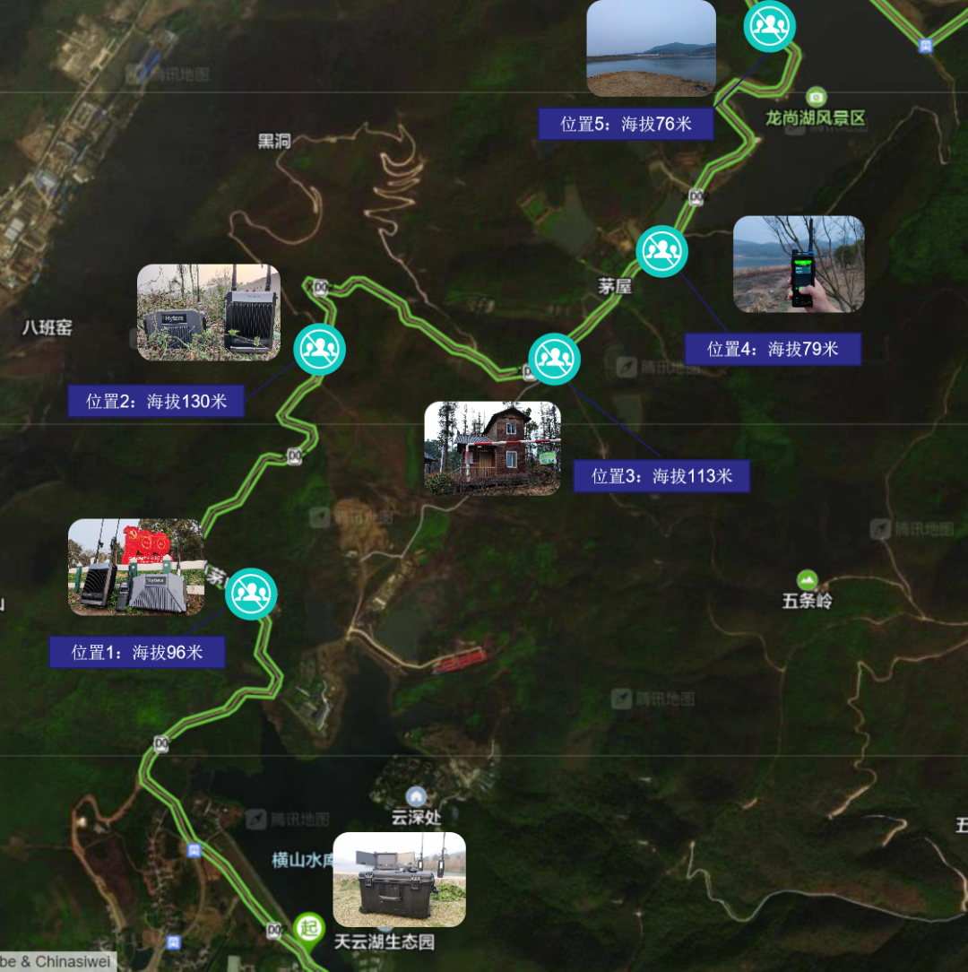 本次测评选取南京青龙山风景区5.9公里的山地区域为测试环境,沿途有水库、山路、树木遮挡、起伏山头。选取临时指挥部部署E-Center指挥中心,沿途选取5个测试点,对自组网基站信号进行监测。每个测试点分别采用窄带终端进行语音对讲3次,宽带终端进行语音对讲3次、视频上拉3次,每次持续3分钟。实测语音效果清晰、保真度高。上拉视频流畅,没有卡顿。下面为大家介绍下具体的测试过程吧。