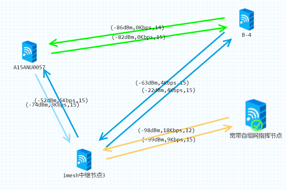 节点2的Mesh手台与突进Mesh手台信号为-113dbm~-118dbm |