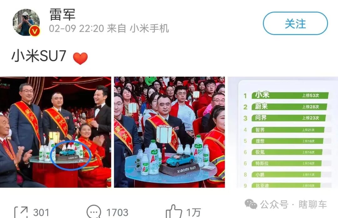 所以说,小米SU7也就没有必要再投入太多钱在春晚上打广告了!