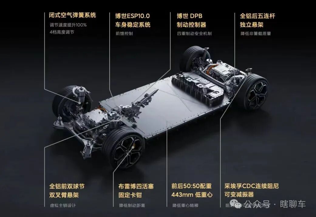 ④ 智能底盘:小米SU7采用的是前双叉臂/后五连杆式独立全铝合金悬架,并且自带CDC阻尼可变空气悬架,并且很多参数都能够通过软件算法进行毫秒级精细化调节。还有博世10.0版ESP车身稳定系统为小米SU7提供了优异的操控性和舒适性,智能底盘加持下可以让小米SU7就算行驶在颠簸路面也是如履平地。
