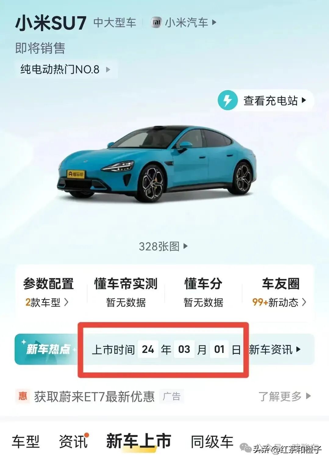 最近,互联网上还流传着另外一张图,也证明了这一点,那就是小米SU7在某车帝的介绍页面截图,上面也显示了小米SU7的具体上市时间为2024年3月1日。作为国内第一大汽车网,也许,人家有什么内幕消息也说不定,万一是真的呢?