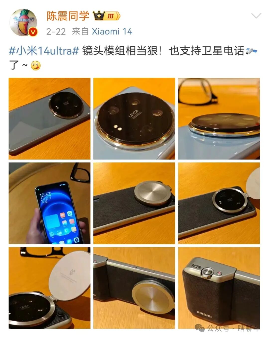 而在小米14ultra新机上市时,陈震依旧为小米手机站台,第一时间发表了动态,表示“镜头,模组相当狠,也支持卫星电话了”。