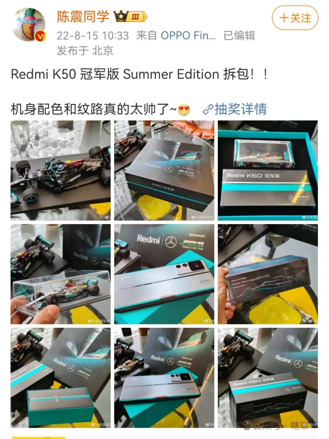 比如,在Redmi K50 冠军版 Summer Edition 拆包上市发布时。