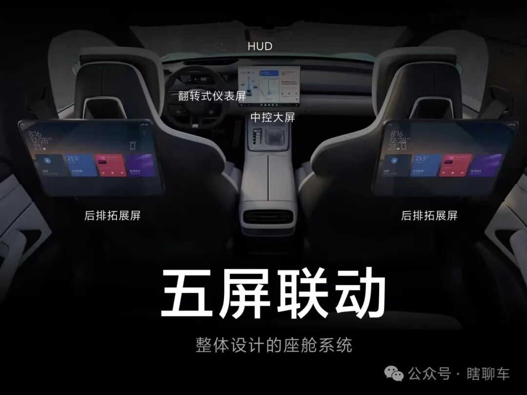 小米SU7的内饰豪华程度也不亚于百万豪车,其智能座舱搭载了高通骁龙8295高性能座舱芯片,16英寸中控生态屏,56英寸超大HUD,可翻转式仪表屏,小米Pad可作为后排拓展屏,原生车机系统,五屏联动。