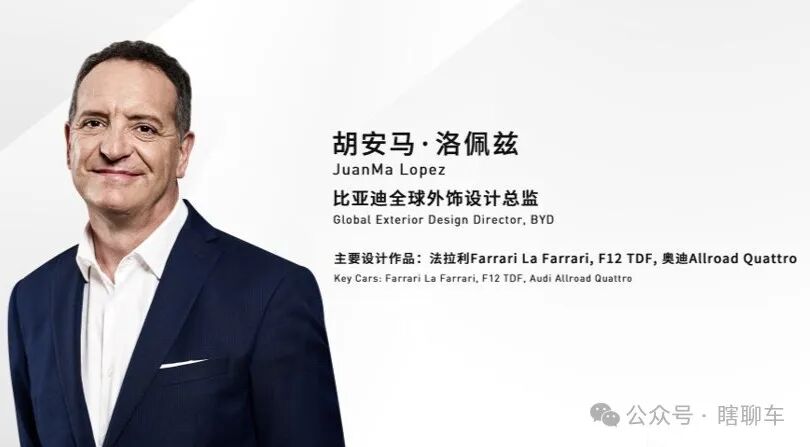 ② 胡安马洛佩兹,现任比亚迪全球外饰设计总监,被誉为设计界的“360度全才”。曾经设计了“超跑三大神车”之一的法拉利La Ferrari、兰博基尼“最成功的车型”Gallardo Coupe等一系列车型。