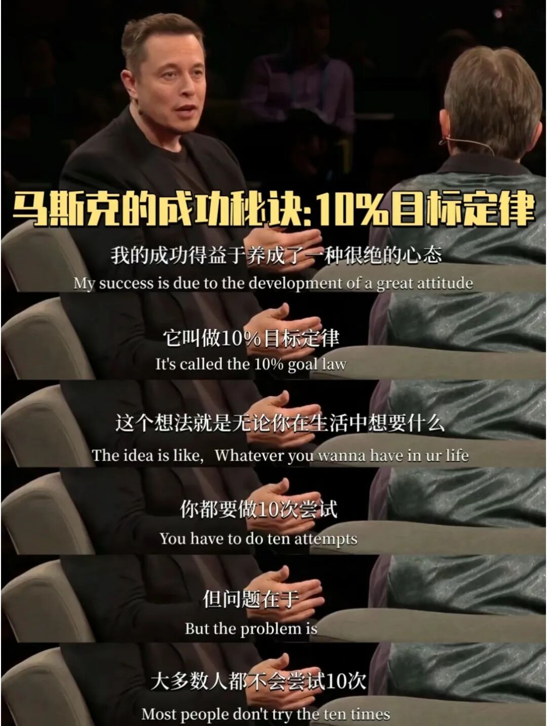 马斯克的10%目标定律,持续挑战的心态允许他在面对挑战时不轻易放弃,而是持续地寻找解决问题的方法。