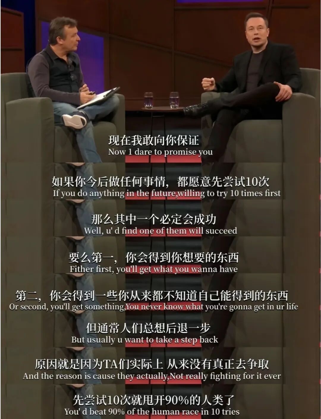 马斯克认为,成功往往需要在面对困难和失败时保持坚持和毅力。