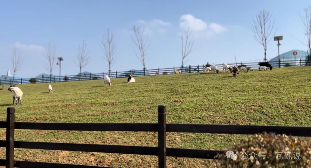 5️⃣如果想不花钱近距离和小动物玩耍,可以去“喜羊羊牧场”,牧场是用木栅栏围起来的,可以隔着栅栏给小羊喂青草吸引小羊到栅栏边来。山羊饲料是10元/份,不想买饲料就在周边找些青草,也是可以喂的。我当天去的时候有三只小羊被放出来在栅栏外边活动,引得游客围观拍照。