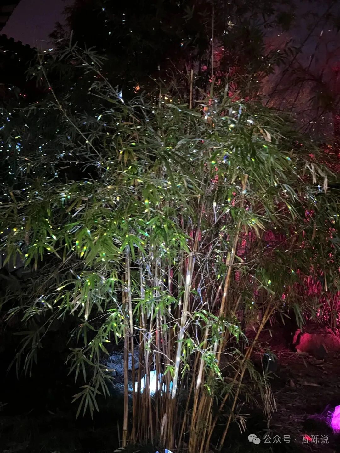 景区内路边也布置了简单的灯光秀,比如星光点点的竹林还挺好看的。